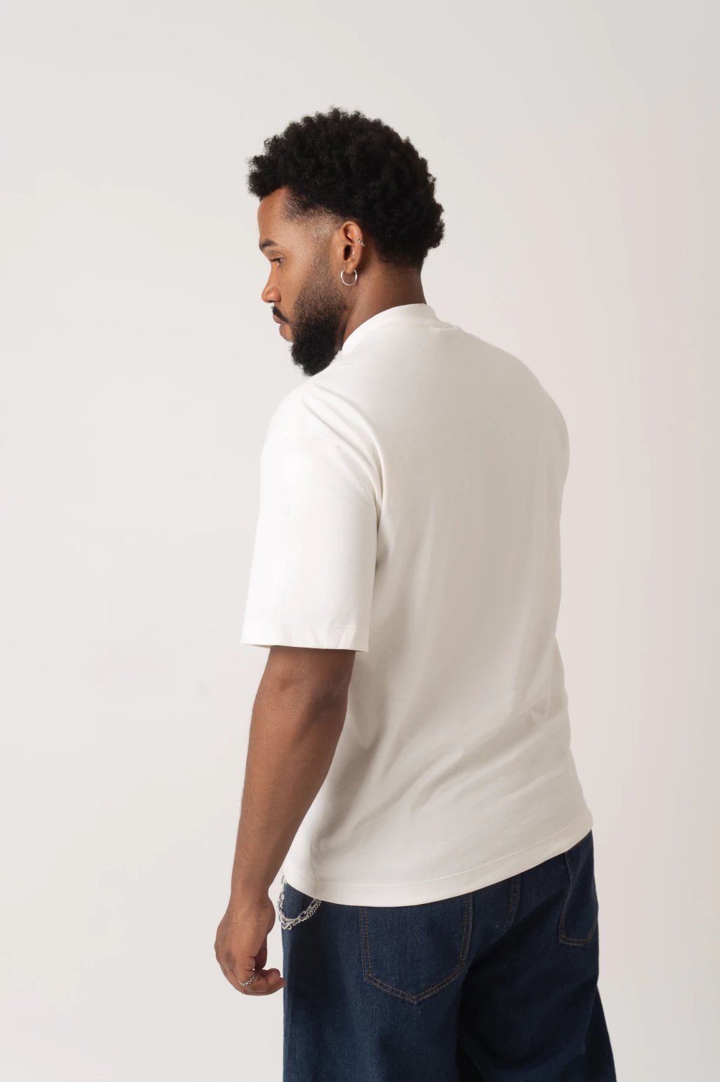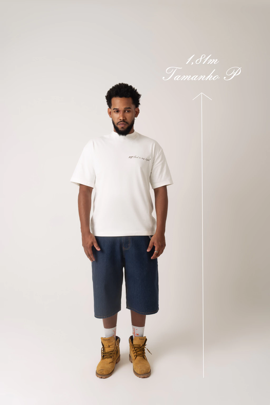 Confeccionada em Suedine OffWhite 100% algodão 220GSM (Alta gramatura), conta com estampa frontal minimalista e pequena.
